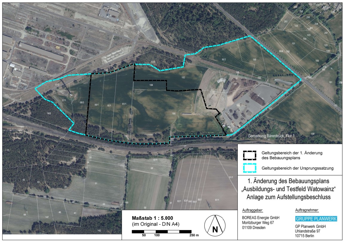 Die Gemeindevertretung der Gemeinde Teichland hat in öffentlicher Sitzung am 12.08.2025 den Vorentwurf der 1. Teil-Änderung des Bebauungsplanes „Ausbildungs- und Testfeld Watowainz“ der Gemeinde Teichland in der Fassung von Juli 2025 beschlossen und die dazugehörige Begründung inklusive Umweltbericht gebilligt.