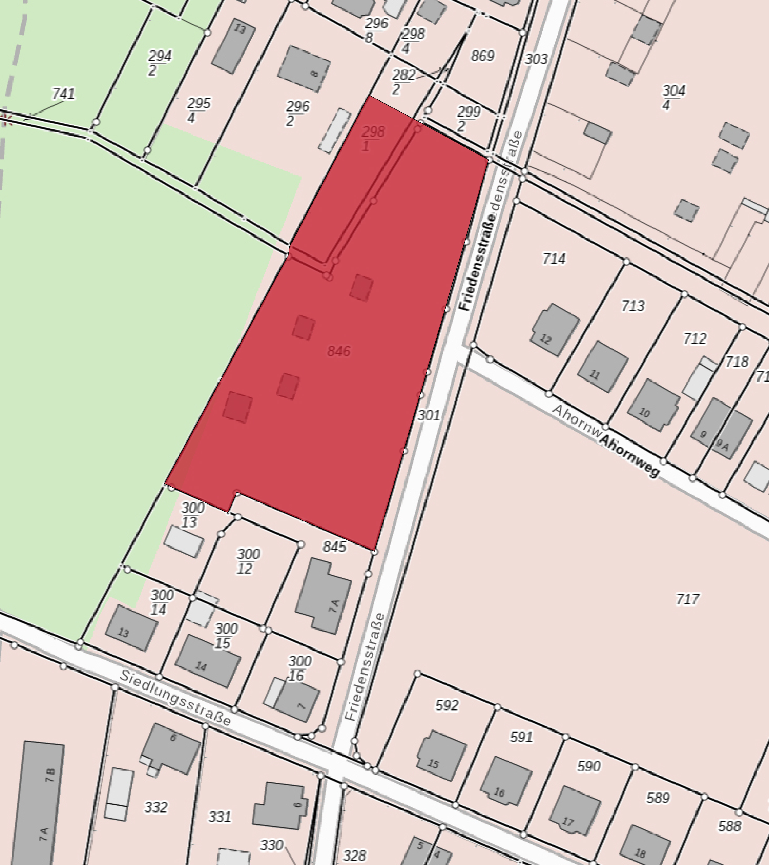 Der räumliche Geltungsbereich des Bauleitplans umfasst einen an der Friedensstraße gelegenen Bereich mit einer Größe von 5100 m². Der räumliche Geltungsbereich ist in der beigefügten Anlage dargestellt, der Bestandteil der Bekanntmachung ist. Ziel ist die Schaffung der bauplanungsrechtlichen Zulässigkeitsvoraussetzungen für die Errichtung von Einfamilien- und Reihenhäusern.
